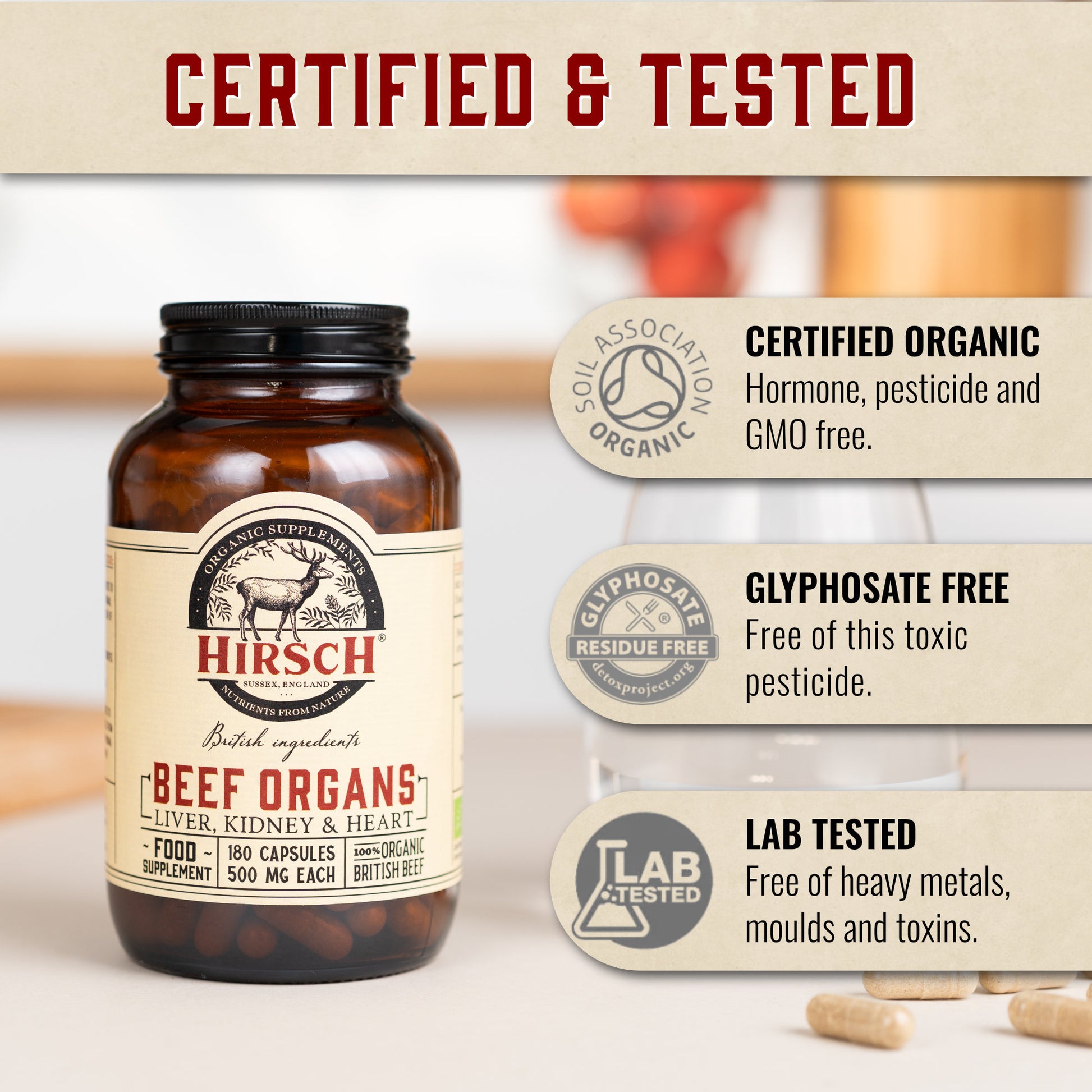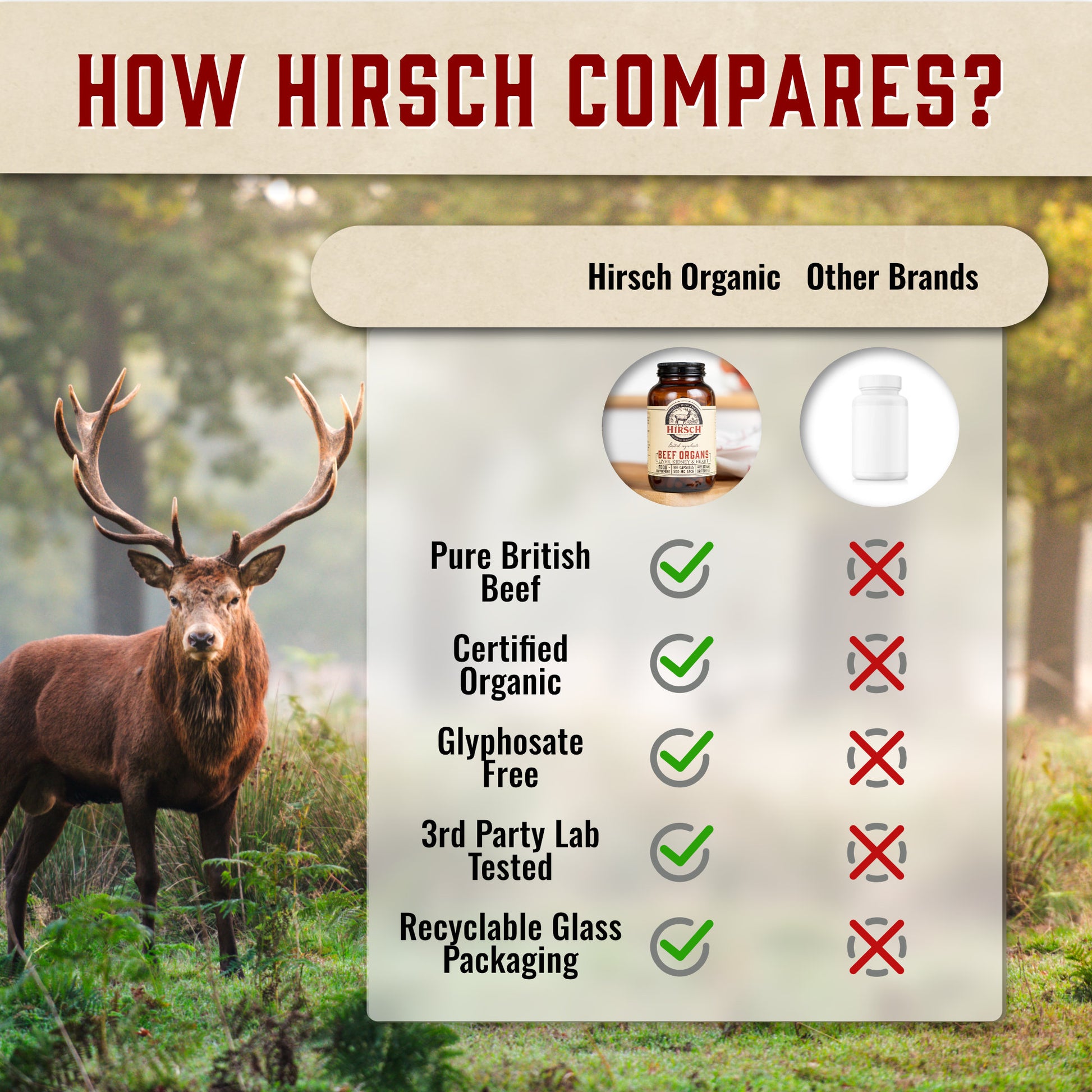 Hirsch Organic is a British nutrition company focused on offering the highest quality grass fed organic beef organ supplements, sourced from farms in the UK.